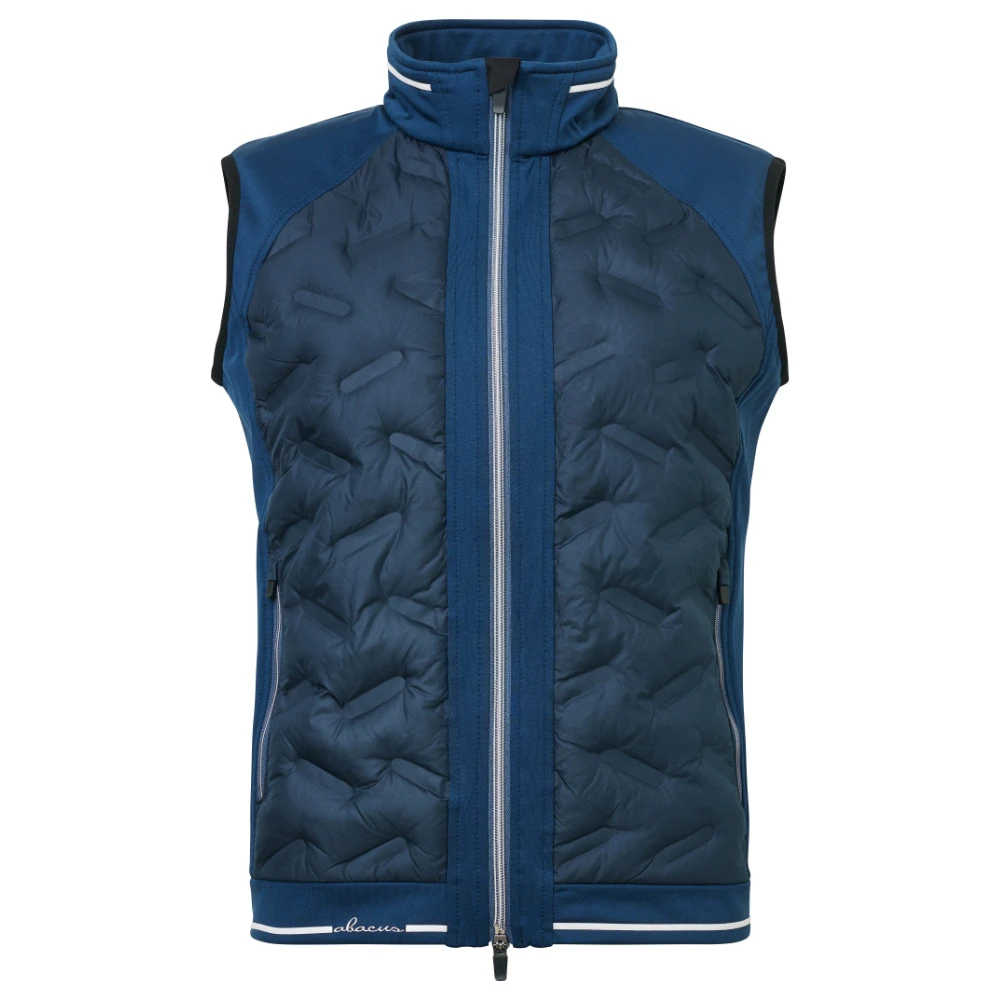 Grove Hybrid vest has a seamless quilted windproof fabric which is padded at front and back body which will keep You warm. The side panels and shoulders are made of a very stretchable fleece for better movement. Fleece is breathable and brushed on the inside. Full zipper at front and in the two front pockets. Contrast stripe at body bottom and outside collar. Abacus logo at back left body bottom and along right front pocket.