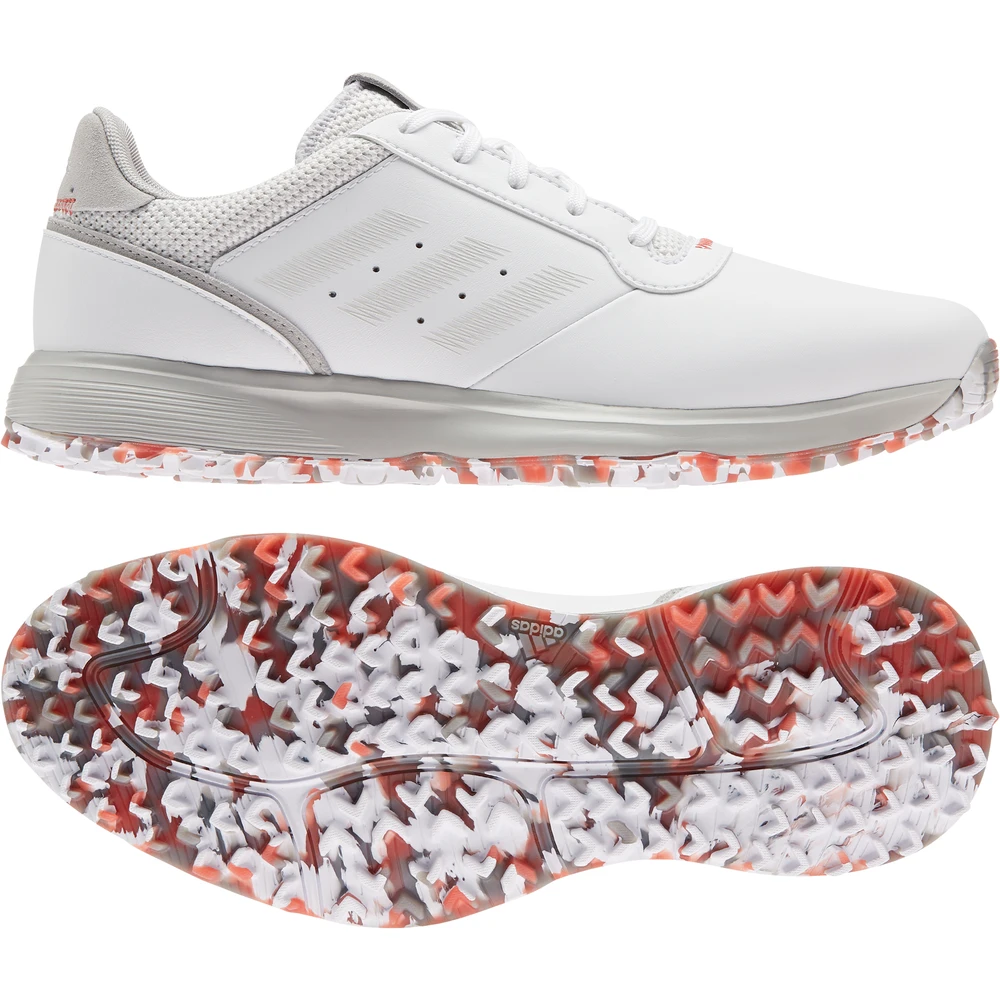 adidas S2G SL Mens Spikeless Leather Golf Shoes FX4333 These men’s golf shoes bring comfort and support for the course with the walking ease of a spikeless outsole. A Bounce midsole adds lightweight cushioning and flexibility to every stride and swing. The soft leather upper maintains a sleek look. Whether you’re sneaking out for a quick nine or just taking it casual on the course, these adidas golf shoes provide cushioned comfort and versatile style. Their spikeless design grips the green and lets you transition off the course without missing a beat. A Bounce midsole keeps you light on your feet, whether you’re on the course or walking around town. The leather upper creates a clean look.