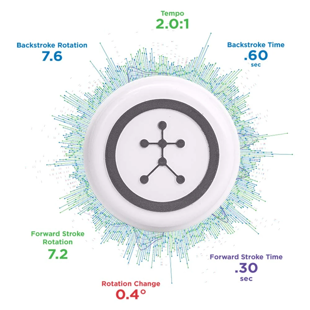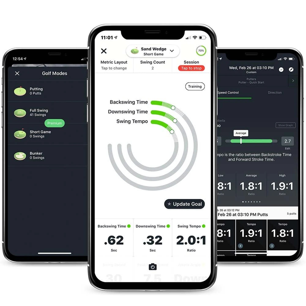 Putting metrics include: Backstroke Time, Forward Stroke Time, Total Stroke Time, Tempo, Backstroke Rotation, Forward Stroke Rotation, Rotation Change, Backstroke Length, Impact Stroke Speed, Lie Change and Loft Change. Full Swing Metrics include: Backswing Time, Downswing Time,Tempo, Total Swing Time and clubhead speed.
