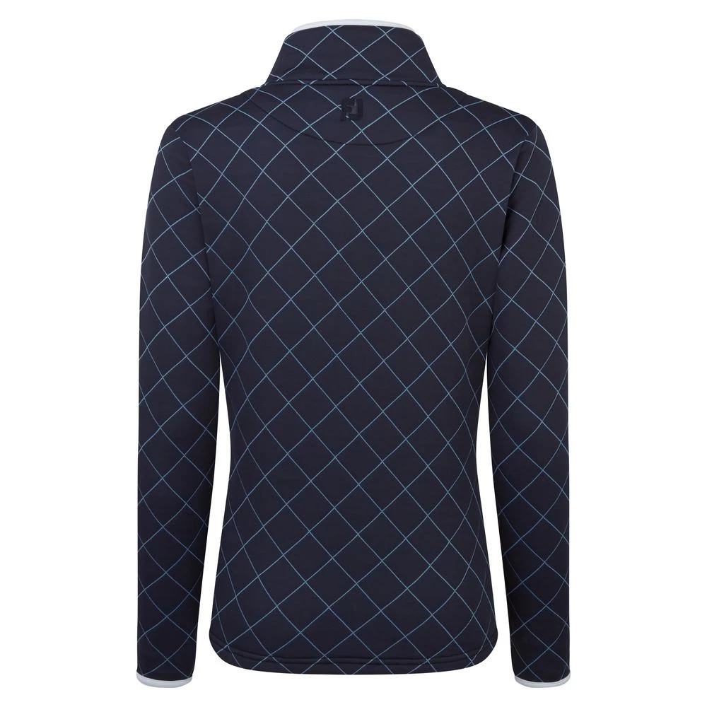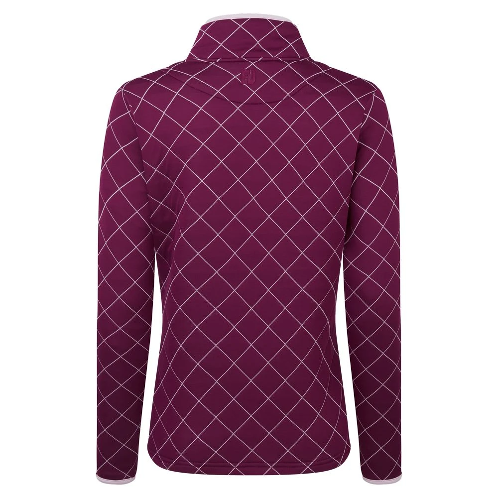 The FootJoy Ladies Jersey Quilted Golf Midlayer is a super soft double-layer fabric, constructed with stretch jersey knit sleeves and a raglan finish for added mobility. Packed with technology, the stretch double-layer jacquard knit fabric will keep your core warm while allowing a free range of motion throughout the golf swing. Its easy-care label means that it avoids wrinkling and shrinkage during washing, and the Anti-Microbial Finish eliminates odour to keep you looking and feeling great all day long. Athletic modern fit. This garment has an all-over diamond stitch quilted pattern, contrasting collar piping, and zipper taping.