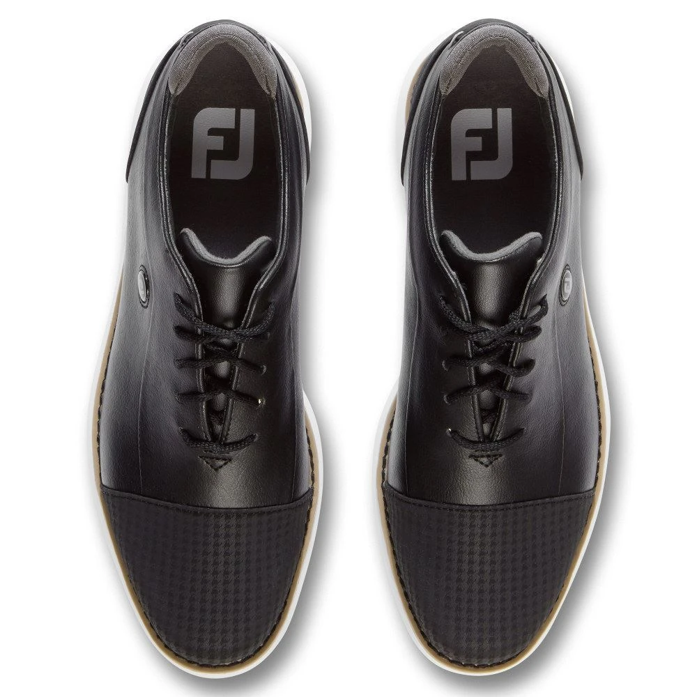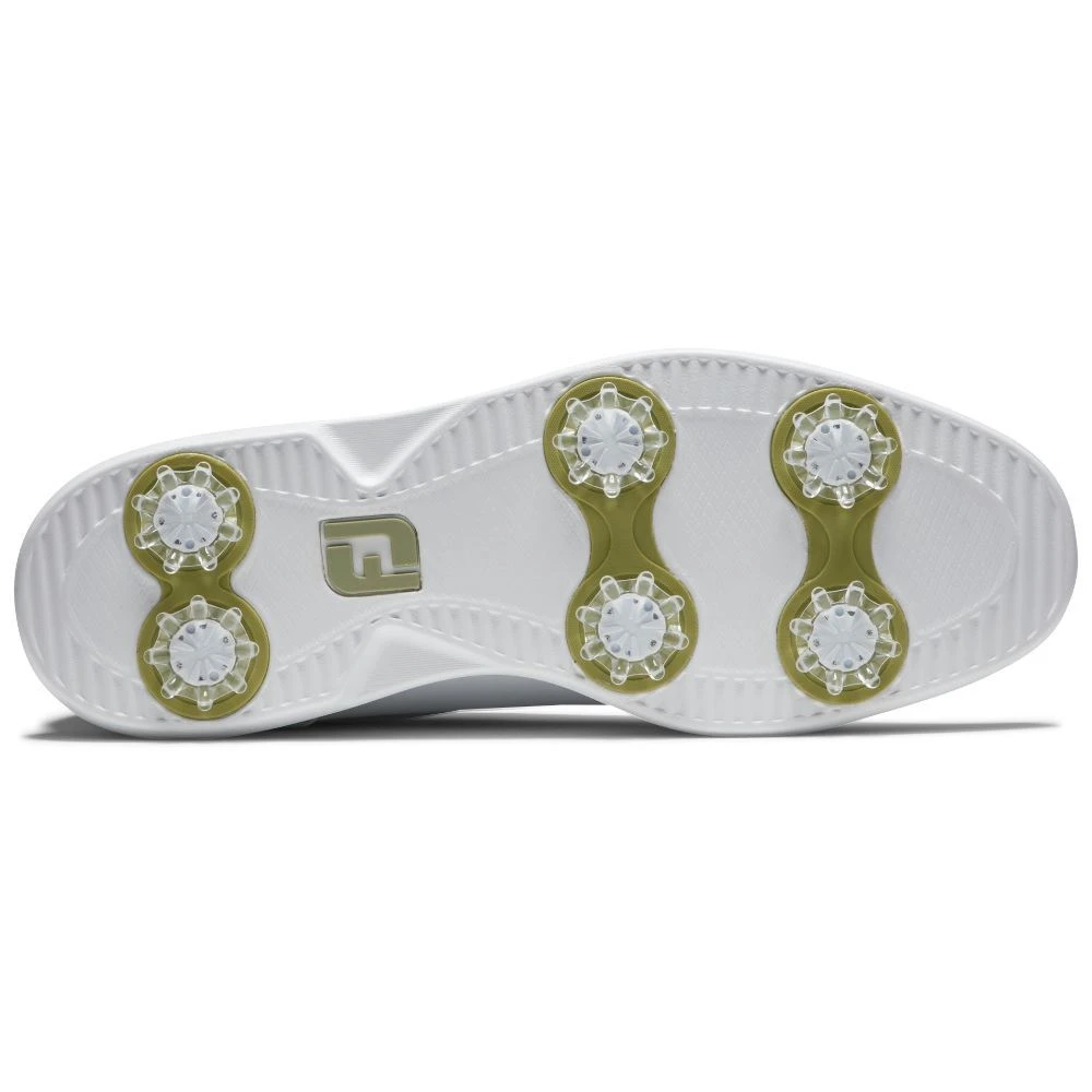 Standard fit in the heel and instep with a slightly shallow and square forefoot. Extra depth last. Full grain leather upper. Foam midsole for lightweight comfort. Molded FitBed® for underfoot support and cushioning. Pulsar LP cleats by Softspikes. 1-Year Waterproof Warranty