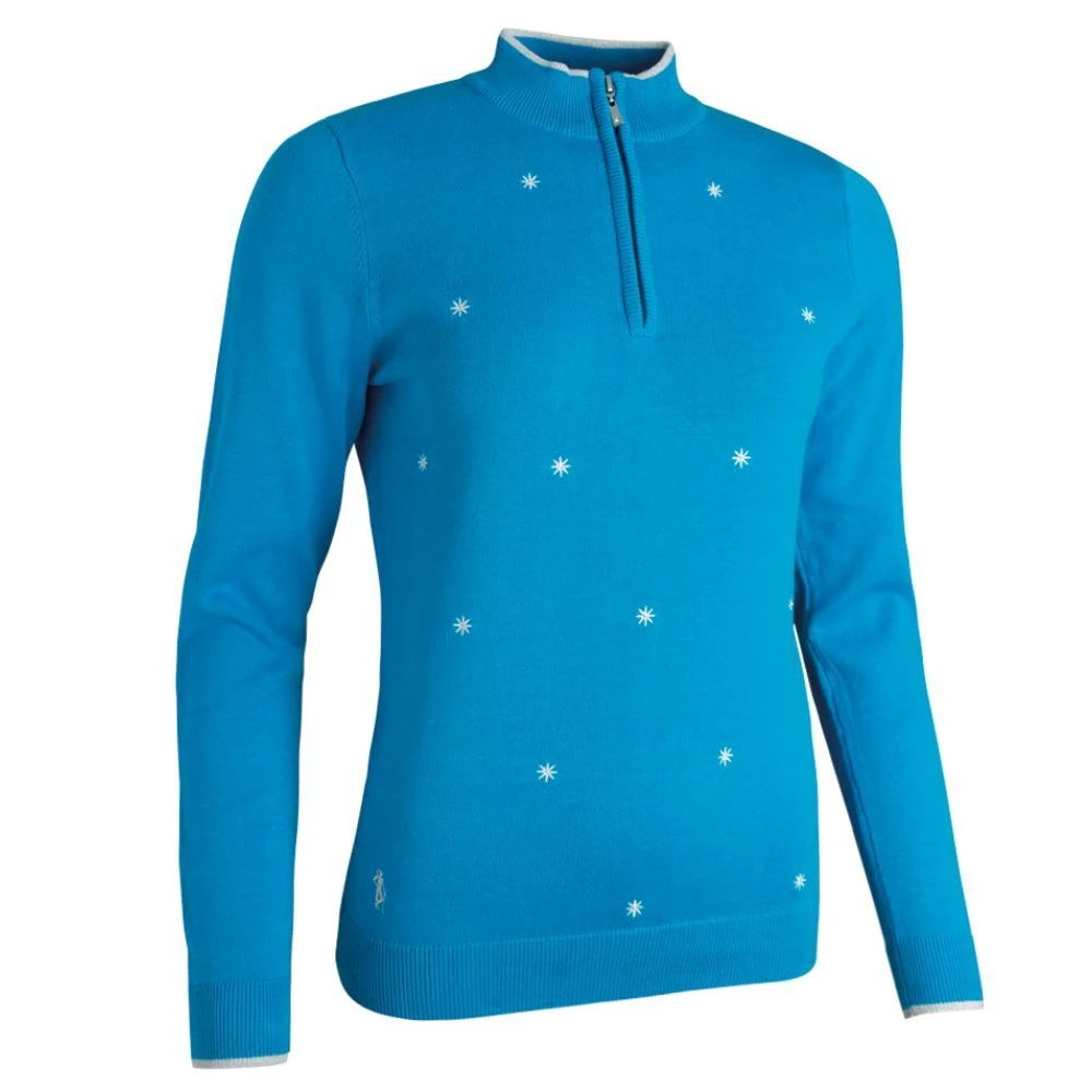The Glenmuir Women’s Paige Pullover is a beautiful zip neck opening sweater with embroidered flowers with a silver lurex on the front panel. Made from combed cotton, the Paige sweater is lightweight and breathable, and perfect for those occasions when you need a little extra.