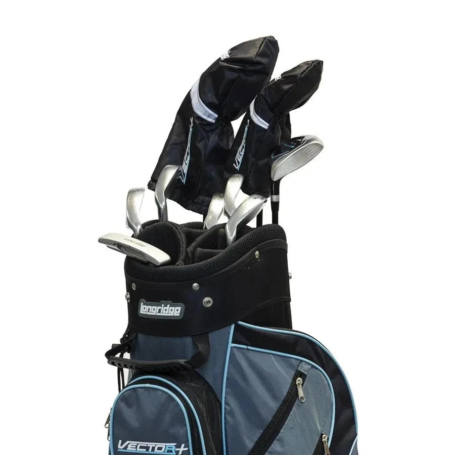 The Longridge Vector+ Ladies 12pc Set is ideal for any golf enthusiast. With 9 clubs, 2 headcovers and a cart bag. A set that is perfect for beginners or intermediate players. The 460cc Alloy Driver offer maximum size and power, while offering a large sweet spot to prevent miss-hitting. includes a fairway wood, hybrid wood, 5x irons (#7 to #SW) and putter. Woods and irons fitted with composite graphite shafts. Putter fitted with Steel shaft