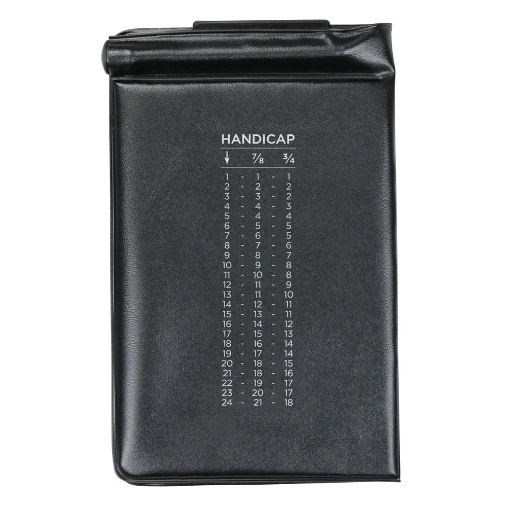 A protective case for your score card, keeping it dry and providing a firm writing surface. It features a score card clip and a pencil.