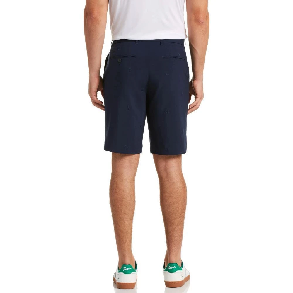 The Allover Pete Embroidered shorts are brand new this season from Original Penguin. Forming part of their golf collection, these slim-fit shorts are great for warmer weather. They are made from a stretch fabrication for wearing comfort with front and back pockets for small-item storage and silicone details inside the waistband to help keep your shirt in place. They have the signature Penguin logo embroidered all over in a tonal colour.
