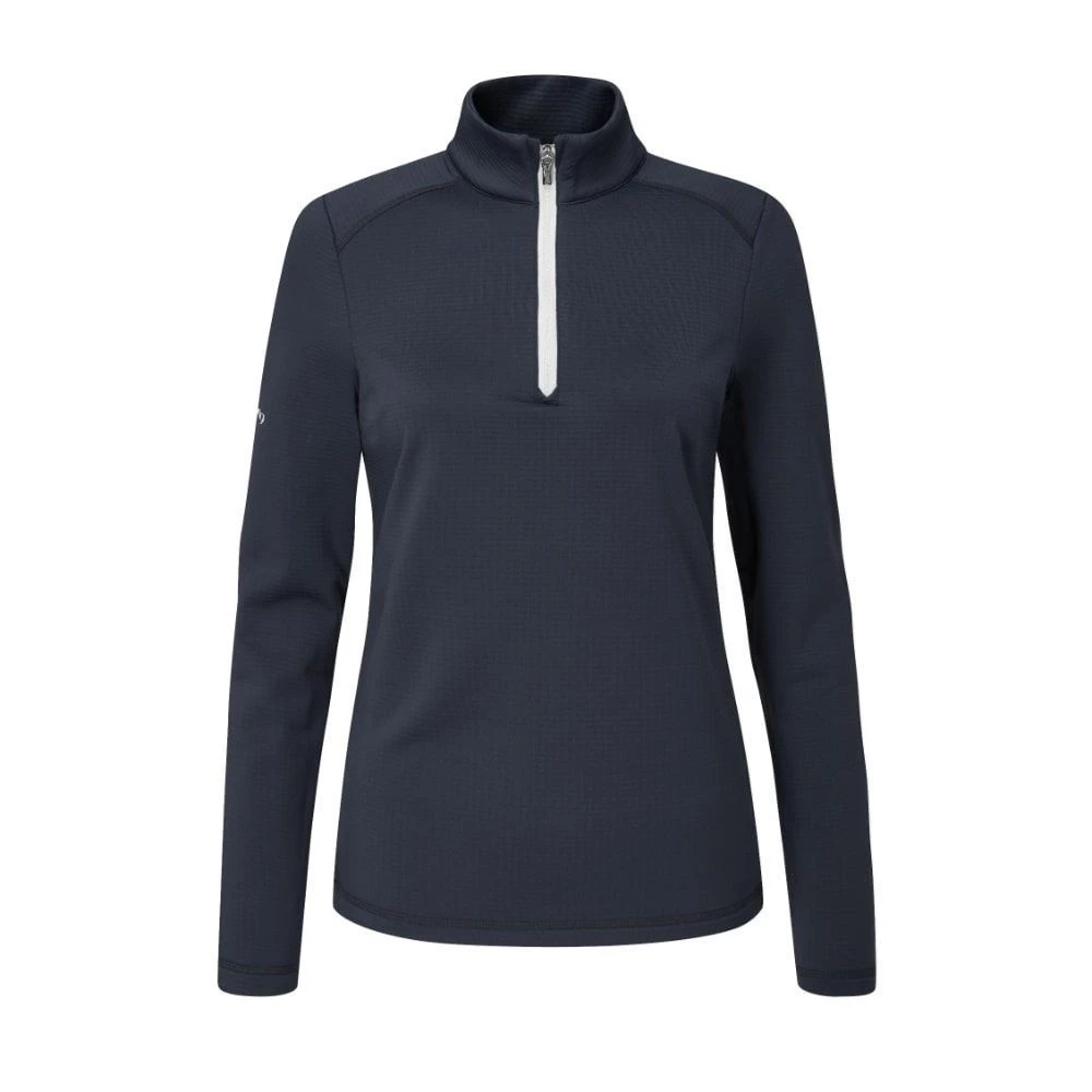 The Ping Ladies Sonya Golf Pullover is a performance grid-back fleece mid-layer, engineered for lightweight warmth and freedom of movement. Water-resistant so rain won’t soak straight through if you’re caught in a light shower, keeping you drier. Ping’s SensorWarm® thermal properties also trap warm air and resist wind-chill, keeping you warm with minimal weight and the stretch fabric allows you to move freely through your swing.