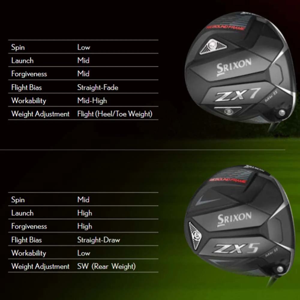 The Srixon ZX7 driver now features a more compact, confidence-inspiring silhouette shaped head that delivers the complete range of clubhead adjustability, including two swappable heel and toe weights plus an adjustable hosel sleeve. The ZX7 Mk II lets you easily produce the launch conditions needed for maximum workability and complex shot making.